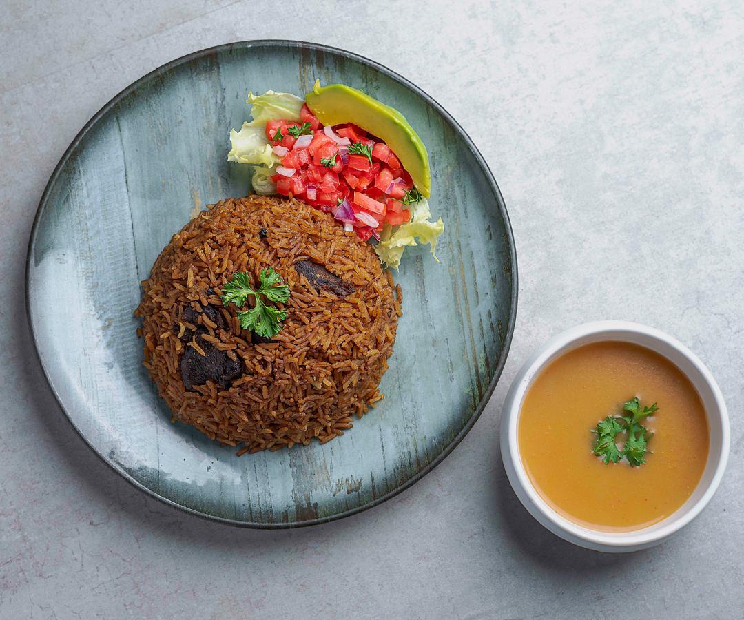 (COASTAL FRIED RICE AND TENDER BEEF DISH SERVED WITH KACHUMBARI